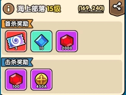 ①海上部落每个赛季仅能获取一次首杀奖励,每次击杀可得到3张时光券。该部落等级上限为15级,总计可获得45张时光券。