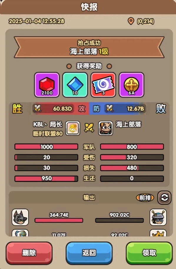 ⑧击破最后一点城防玩家所在的联盟会占领该岛屿,岛屿守军会瞬间恢复,城防恢复50%