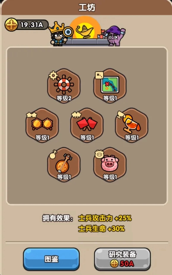 ①工坊和藏品类似,都需要消耗金舵币来研究装备,这一点十分关键!它能解锁3个编队,让你可以同时攻打野怪或是进行采矿!