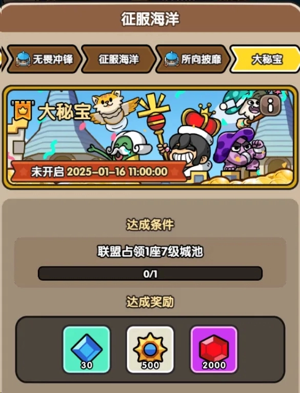 达成指定目标可获得奖励,一共可获得14个王冠。跟着活跃联盟拿满还是比较容易的。