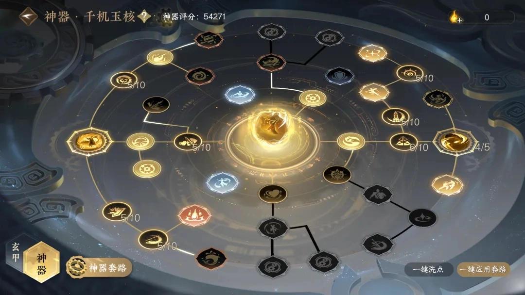 1、首先在技能调整上,“灵豚”与“剑光如潮”的伤害占比均有削弱,其中灵豚的削弱幅度较大,因此我们将灵豚技能替换为珠雨技能。相应地,神器右下的加点需从原来的灵豚强化调整为珠雨强化。神器配置若改为3火木,会伤独立节点也需根据面板会心是否达到8000,调整为会心加成。