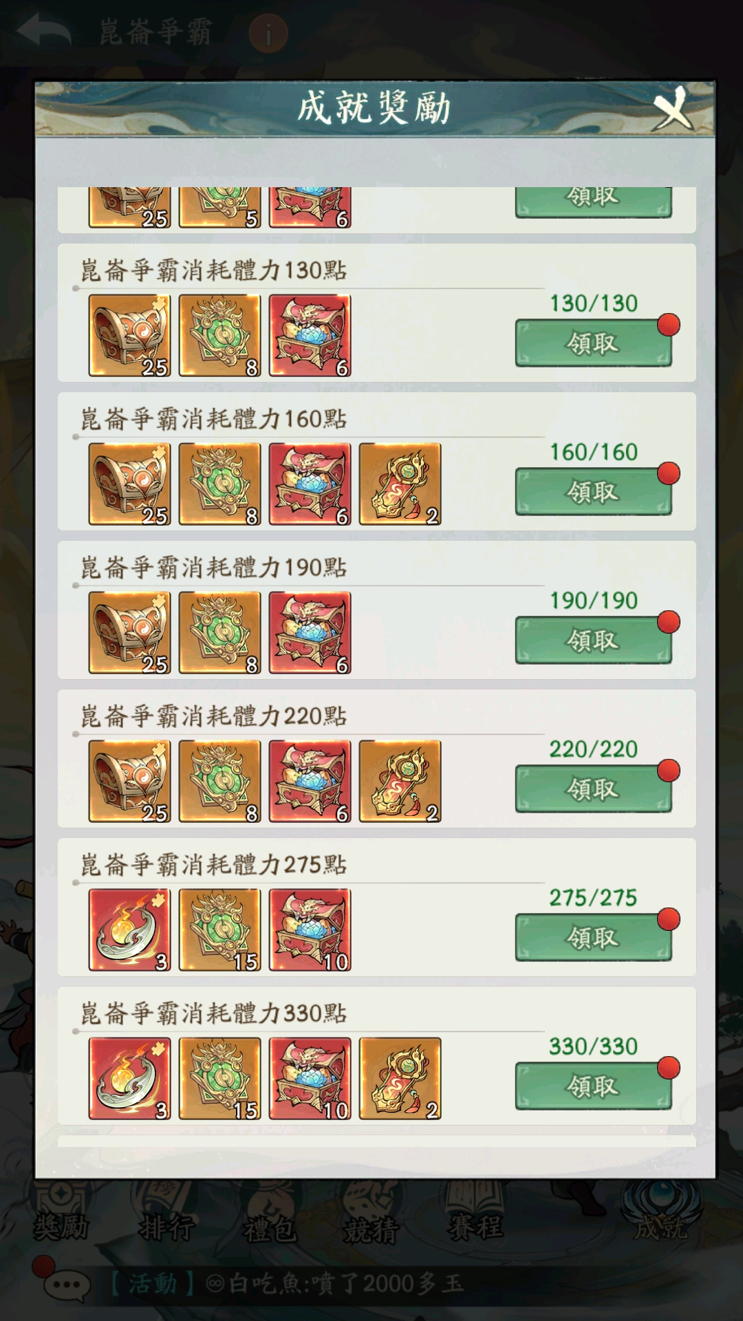 寻道大千的新活动“昆仑争霸”将在每日10点至22点开放,活动持续3天。大家可以把它理解成蓬莱版本的攻城玩法,日常探索环节和未央事件的模式比较相似,活动中还会有复活类道具。妖盟排行第一的话,全员都能获得星君奖励;个人排行奖励包含洗炼材料和减伤法宝碎片;成就奖励则有洗炼材料、减伤法宝碎片以及仙界罗盘。接下来就帮大家估算一下各档位成就大概需要多少氪金成本!