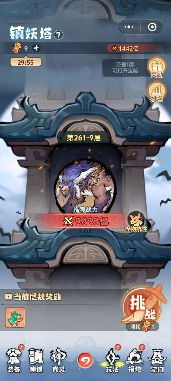 6、要是碰到实在难以通过的关卡,可以等第二天再尝试挑战,boss的设定是大约五层以内,每天都会比前一天稍微弱一点。
