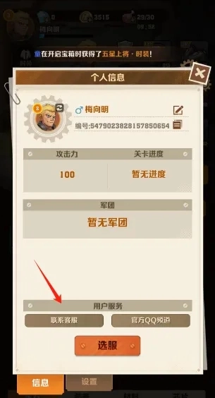 进入游戏后,在战斗选项界面(商城除外的界面都包含)点击自己的头像,接着就能看到下方的联系客服选项了!