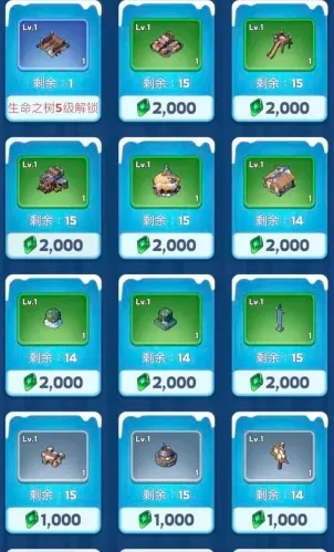 可以通过升级生命之树和伐木场来解锁更多装饰物品与属性加成。升级过程中需消耗当地货币——生命结晶和繁荣度。生命结晶的主要获取途径包括:
