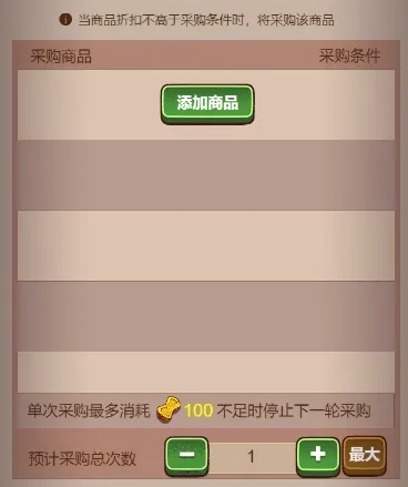 设置完成后点击确定,接着点击采购,系统就会按照你设定的价格进行购买操作,通常设置的次数是23次。