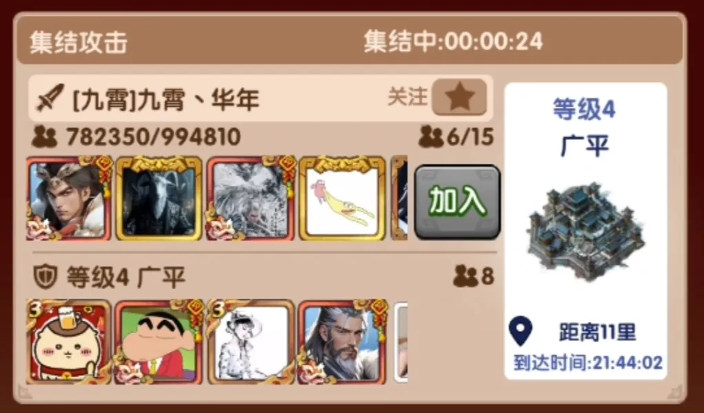 攻击集结到达时间是21:44:02,我们来加入这个集结