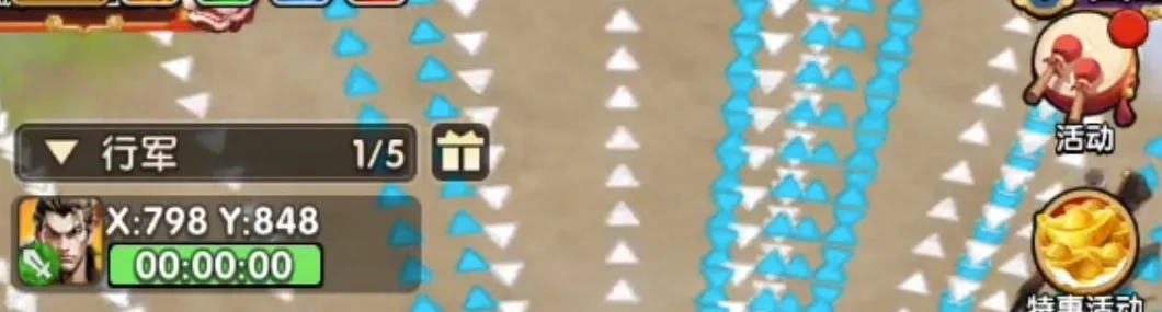 这个实例可以证明上述计算方法是正确的(攻击与驻防的倒计时逻辑是一致的)。按照倒计时的逻辑,我们来模拟一下攻击的实战情况:回到游戏界面搜索一个流寇,我会把到达时间设定在38分整,时间一到就立即出发。