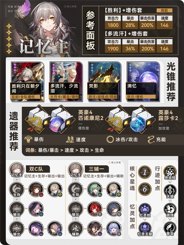 ·双C队伍配置:大黑塔搭配翡翠(或小黑塔),再加上记忆主以及灵砂(或砂金)