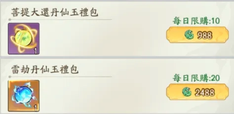 对于仙玉存货多只花仙玉的道友来说!只能购买菩提大还丹和雷劫丹,具体所得积分奖励如下: