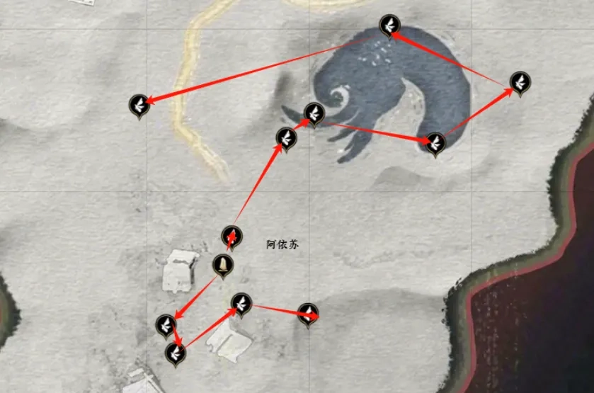 阿依苏共有11个(其中下面四个需要完成“红缨”及后续“万事知”任务后才能全部获取,否则靠近时会消失)