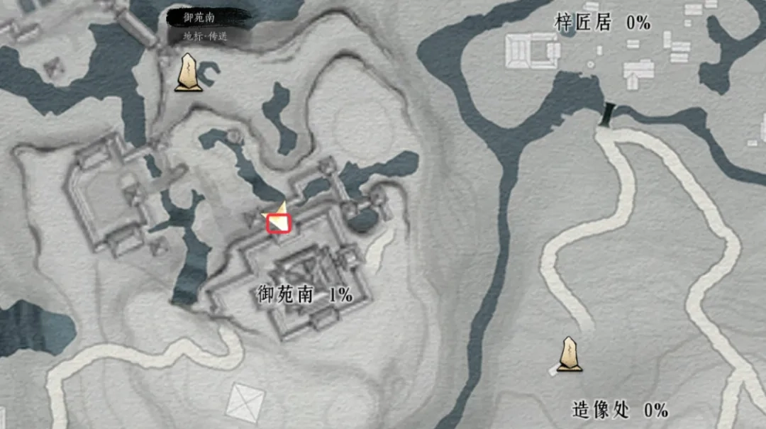 1、新武学“醉梦游春”的偷师地点在御苑南,具体位置可参考图示。
