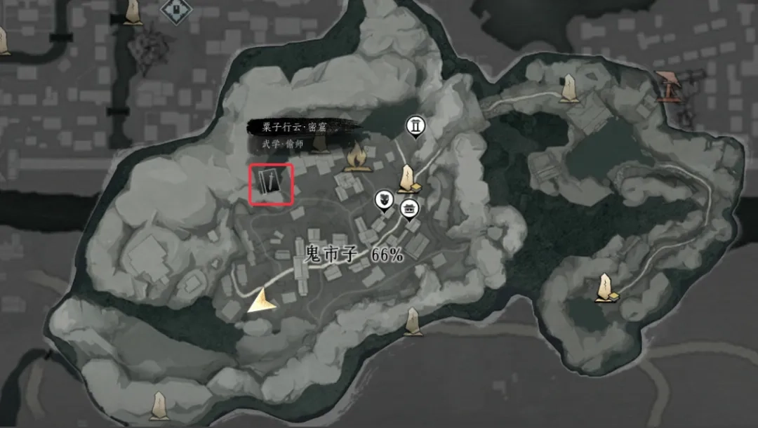 2、新武学,栗子行云的偷师地点,鬼市子在图中所示位置。