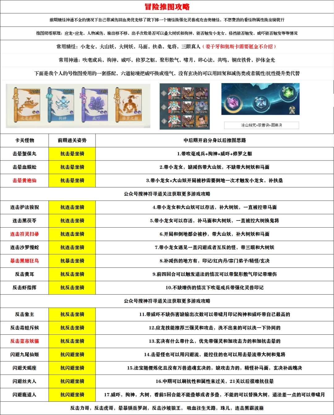 上面提到的冒险推图攻略方案适用于玄仙境界之前,不过大家肯定会遇到其他不同情况,或者养成的灵兽不一样,这时候该怎么推图呢?