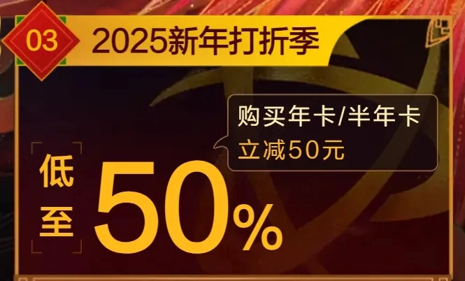 另一个消息是《魔兽世界》2025年新年打折活动即将开启,折扣力度最高可达50%,并且购买年卡或半年卡还能享受立减50元的优惠。