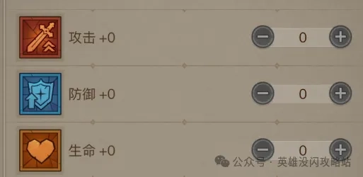 基础属性有三个,分别是攻击、防御和生命。这三项基础属性的加点没有上限,在加成属性加满后,可根据具体卡关情况来分配。