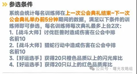 每周一晚上9点,系统将自动启动公会嘉年华活动。符合条件的成员可登台领奖,未达条件的成员则能在台下为他人喝彩,无论参与方式如何,所有成员都能获取丰厚的资源奖励。