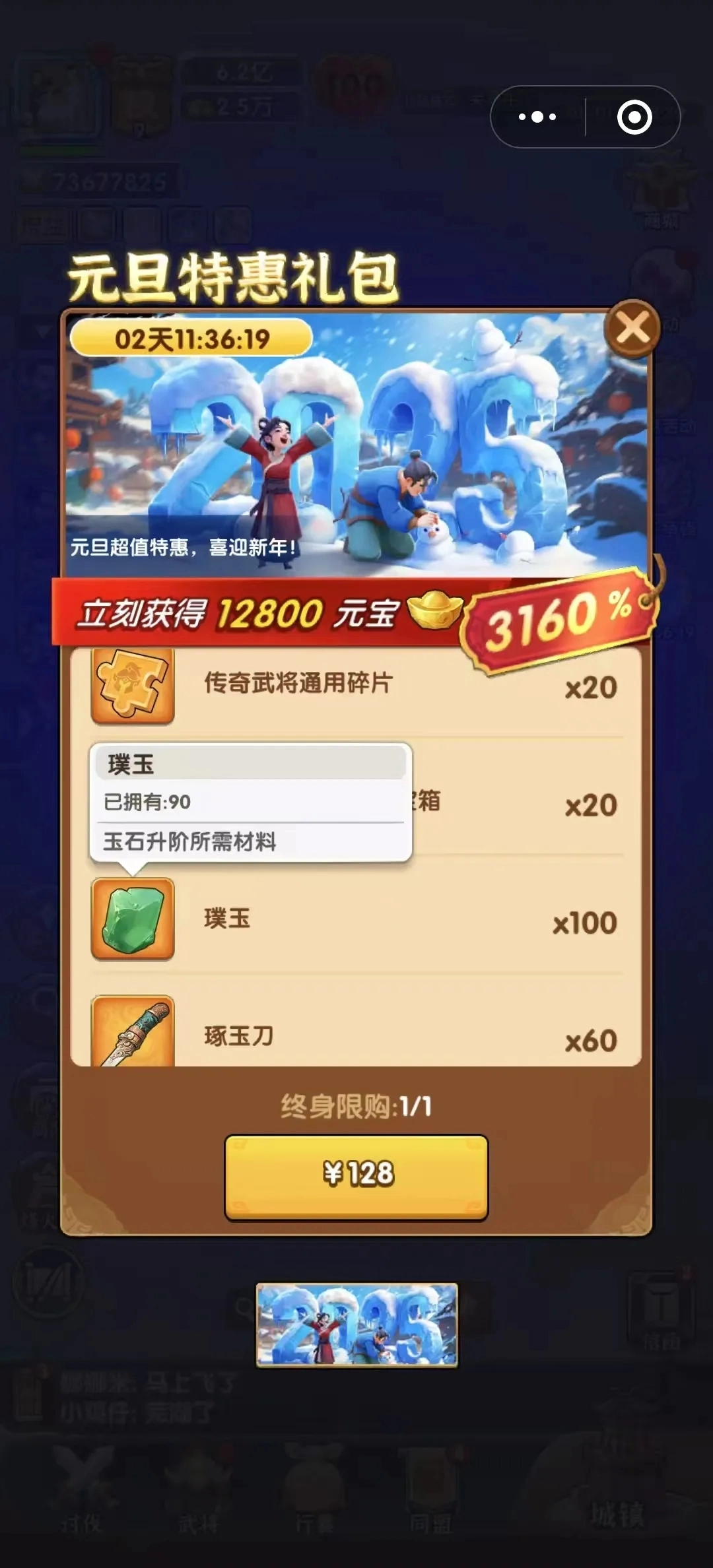 (1)元旦礼包(算最近性价比最高的弹窗礼包了)