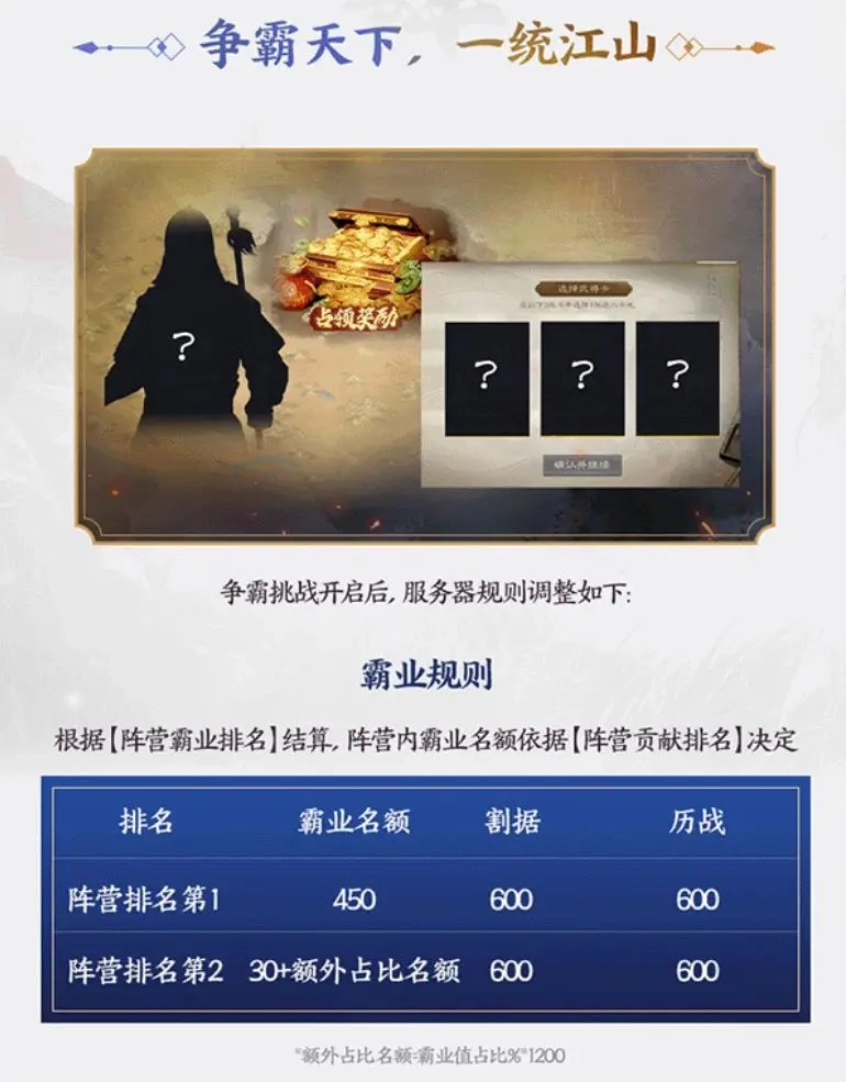 这赛季的霸业规则和以往相比有显著不同,不再是霸业名额差距较小的情形,最多可达150个,最少仅20个,若想获取更多霸业名额,唯有奋力争取更靠前的名次。