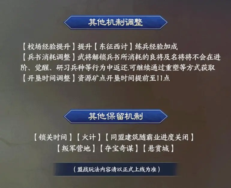 第三点的开垦时间从之前的12点调整到了11点,开垦指的是出生州资源点数量增加的机制,大家留意一下时间变化就可以了。