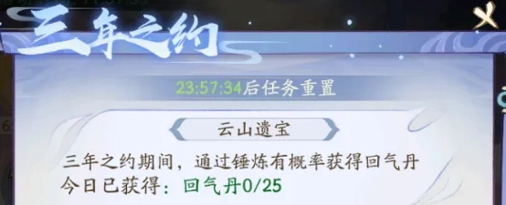 通过砍树和做任务可以获得免费的回气丹,每天砍树可以获得25个回气丹