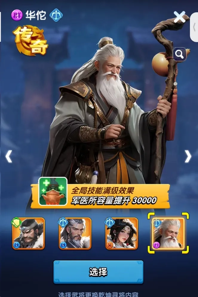 这游戏里目前就这一个奶妈角色,虽说奶量又被削弱了(小声吐槽)。她还能提升军医所的容纳上限,基本属于必选角色了。前期军医所能放的兵不多,要是有个三星华佗加的2万容量,被攻击时就能少损失些兵力。要知道前期2万兵的差距可不小,那时候总兵力往往都不到10万呢。