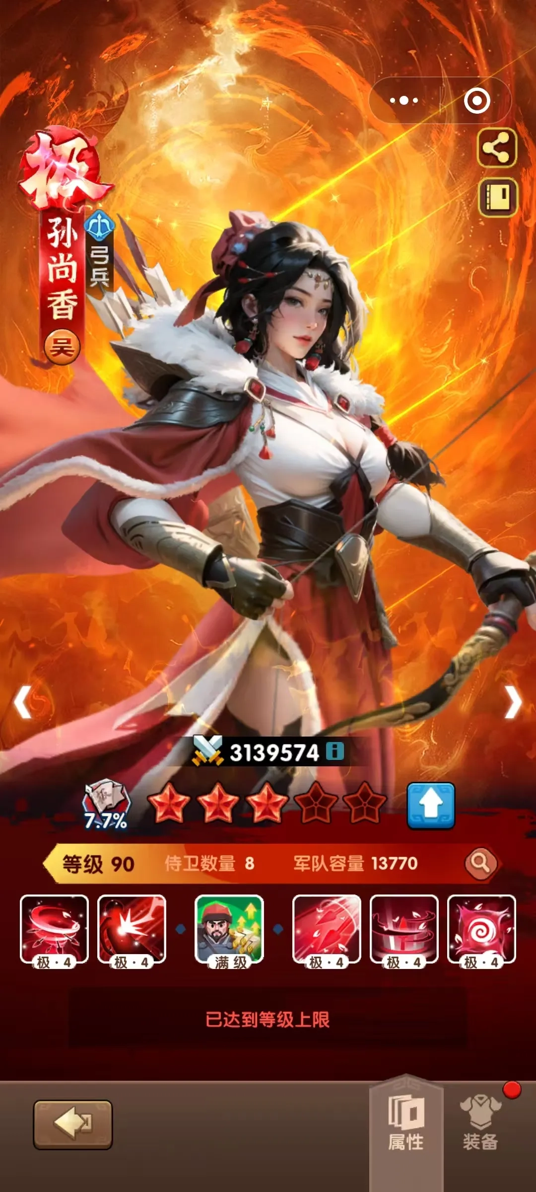 吴国队伍拿,其他人不拿。当前版本最强弓兵。提供集结加成8.5%