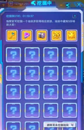 2、建议不要使用一键挖掘功能,这可能会导致道具消耗增加,尤其不要为了获取炸弹而额外消耗道具。可以先尝试点击中间九宫格区域的部分点位,如果没有开出大奖,再点击九宫格内的其他点位,最后再处理边角的点位。