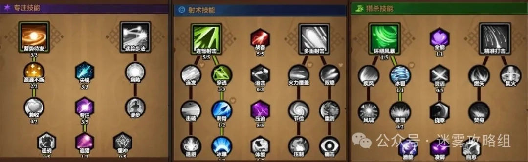 专注技能组合(蓄势待发、源源不断、尖锐、专注、追猎)