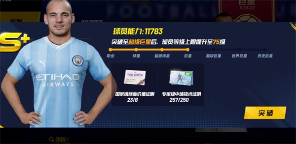 2、突破:等级达到阶段上限后解锁,消耗价值证明+对应位置技术证明,突破后提升等级上限,同时大幅强化属性。突破道具主要通过生涯热身赛、道具商店、活动获取,突破道具位置专属,严禁跨位置乱用。