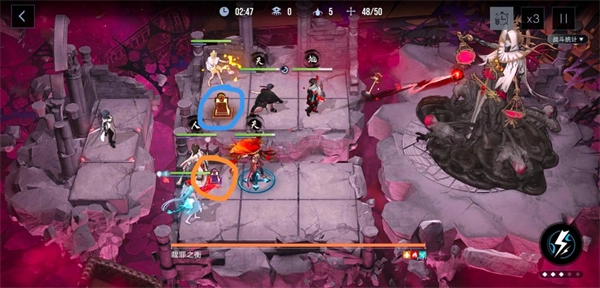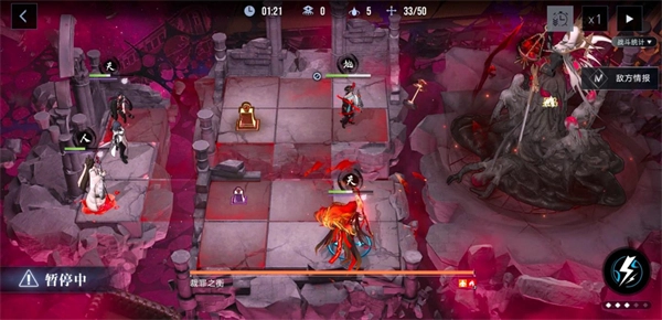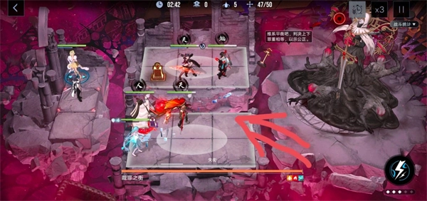 4、断罪机制:地图中的方块会出现红色预警提示,被命中后会导致角色的回能效率降低、普攻速度变慢,建议尽量躲避;若地格不足时,可让肉盾或辅助角色进入这些方块区域,即使被命中也不会有太大影响。