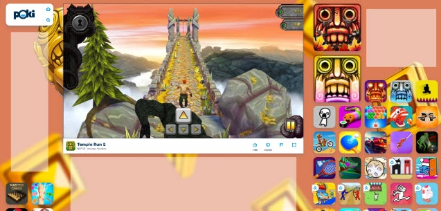 poki的中文名叫宝玩,是一个能在线玩大量小游戏的网站。在这个网站上,你不用下载游戏包就能玩到各类优质游戏,像地铁跑酷、速度之星、神庙逃亡等都有。这里有上万款手机游戏供你免费玩,只要在浏览器输入网址就行,操作简单又方便!而且,你还可以把游戏全屏显示,给喜欢的游戏点赞,或者对不喜欢的游戏点踩。