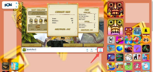 3、由于是在线游戏,游戏内容需要一定时间加载,加载时长会因网络状况和网速的差异而有所不同。加载完成后,游戏界面会显示开始游戏的提示,例如下面这张神庙逃亡2的图片中就有“press space to play”(按空格开始游戏)的提示。