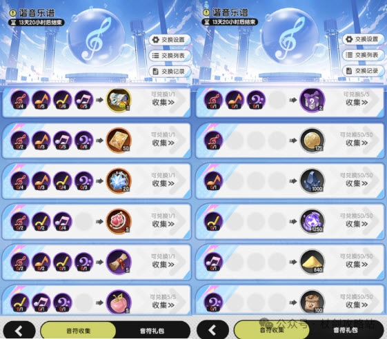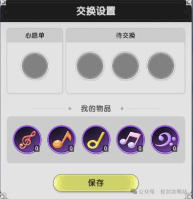 同时支持音符交换功能,用户可分别设置自己想要的音符(心愿单)和可供交换的音符(待交换)。心愿单无论当前是否拥有对应音符均可设置,而待交换列表仅能添加已持有的音符。当心愿单完成后,系统会将剩余未完成交换的音符回退,并将交换设置重置为初始的未设置状态。