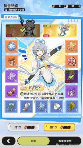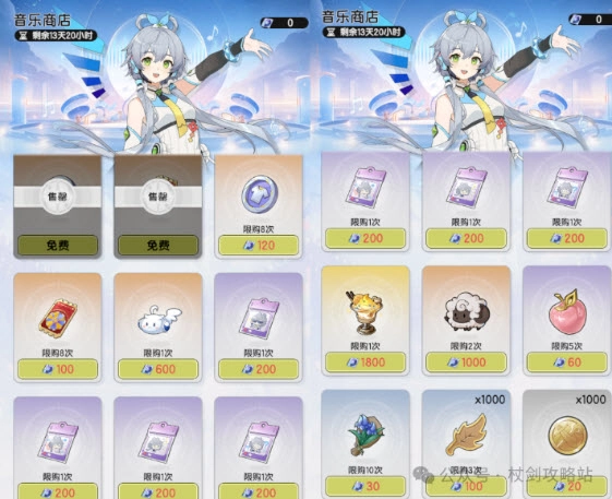 本次活动的音符道具兑换处,音符每日可获取5个,若不进行氪金,且每天都能获取5个的话,总共可以获得70个。