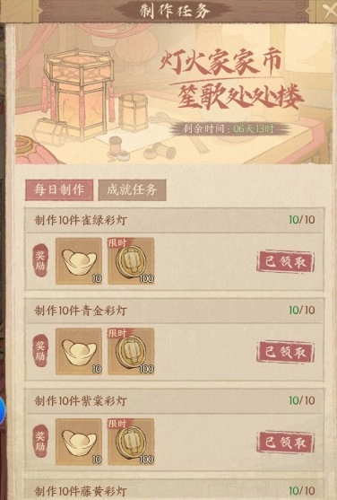 其中,每天只需制作每种花灯10次就能完成当日任务