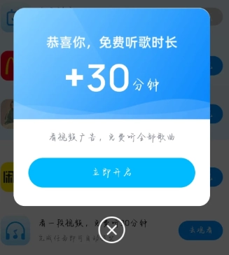 5. 如图五所示,点击“立即开启”按钮,就能继续观看视频以获取更多时长;若不需要,直接关闭即可。