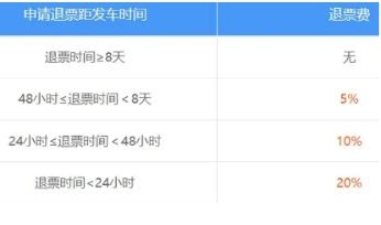2. 若已完成出票,退票费用将依据以下梯次标准进行核收: