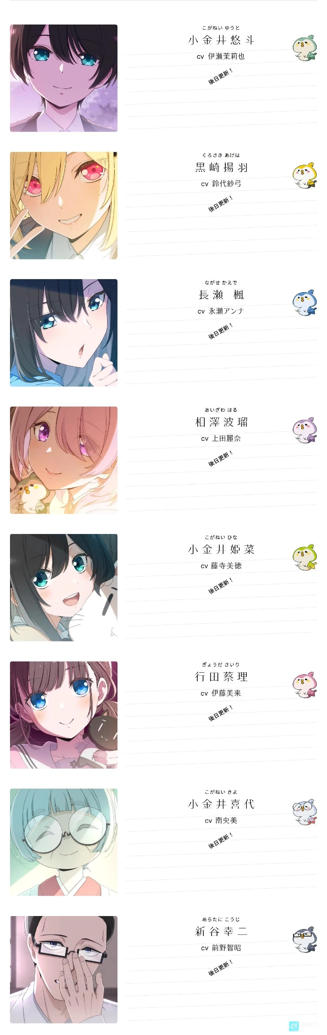 铃代纱弓、永濑安娜、上田丽奈、藤寺美徳、伊藤美来、伊濑茉莉也、南央美、前野智昭