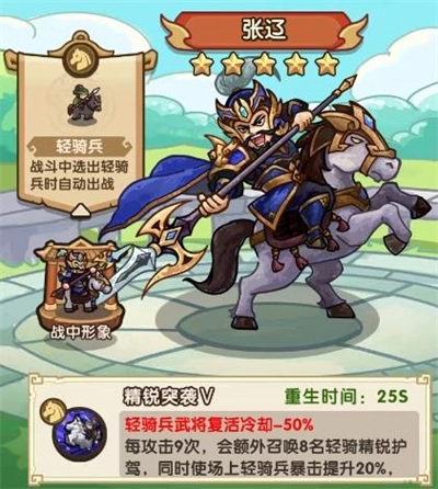 3、张辽,暴击率是轻骑兵的核心属性,不管是卡牌还是宝石,都很依赖暴击率来触发效果。张辽的存在能让轻骑兵的暴击率几乎达到百分之百,同时还能提供大量暴击伤害增益。暴击伤害在后期是远超百分比伤害的一种属性,其稀缺性不言而喻。张辽是轻骑兵阵容不可或缺的核心一环,有了他,轻骑兵的输出才能达到极限。