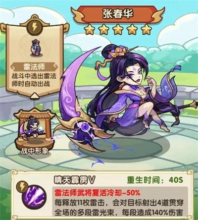 2、张春华,面对存在空中单位或弹道吸收机制的关卡时,往往会让人感到棘手,但她却是应对这类关卡的理想选择之一。她的技能优势十分突出:不仅能穿透所有敌方单位,还能无视敌军的弹道吸收效果,同时拥有对空作战能力;附加的麻痹控制效果能有效限制敌人,让己方部队可以放心输出;此外,技能还带有秒杀特性,随着等级提升,光束数量会相应增加。如果搭配攻速类卡牌或宝石,她常常能触发两次光束覆盖全场,输出能力相当强劲。