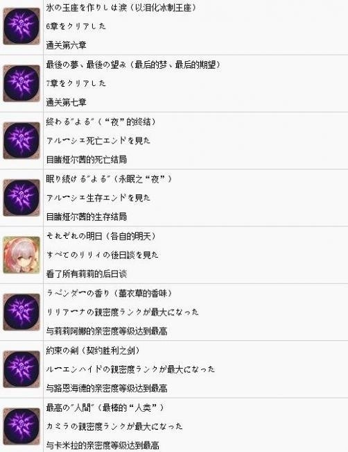 中文全成就达成条件说明