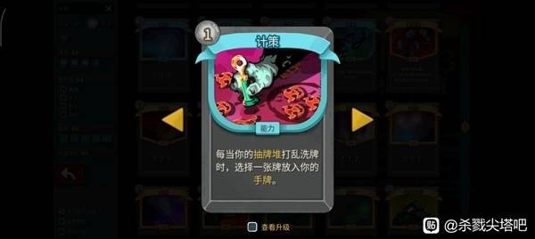 破灭是大家都熟悉的老牌,相比之下计策可能就没那么为人所知了。就像配图展示的那样,计策的效果是洗牌后可以选一张牌加入手牌。当抽牌堆空了的时候打出破灭,会先把弃牌堆的牌洗回抽牌堆,而洗牌的动作刚好触发了计策——由于计策的优先级比破灭的烧牌效果更高,所以劫掠不会被烧掉,反而会通过计策加入手牌,实现“伪抽一”的效果。这套组合本质上还是零费牌之间相互转化的无限循环,无限体系的质量不算高,但这种思路我觉得特别新颖,有很大的开发潜力,分享给大家希望能带来一些启发。