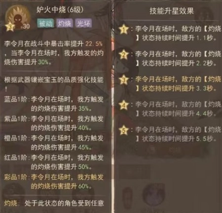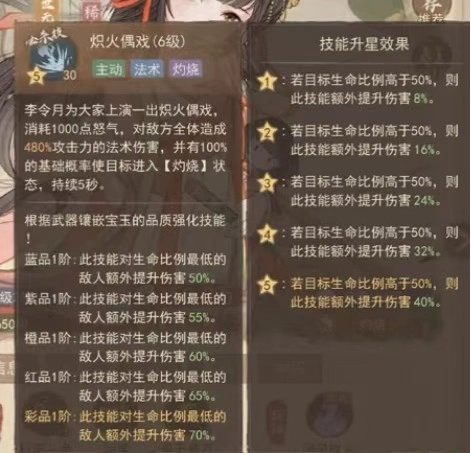 李令月的核心伤害提升效果不明显,不用急于升级这个技能,先把前面的核心技能都点满,最后再补上这个就可以了。