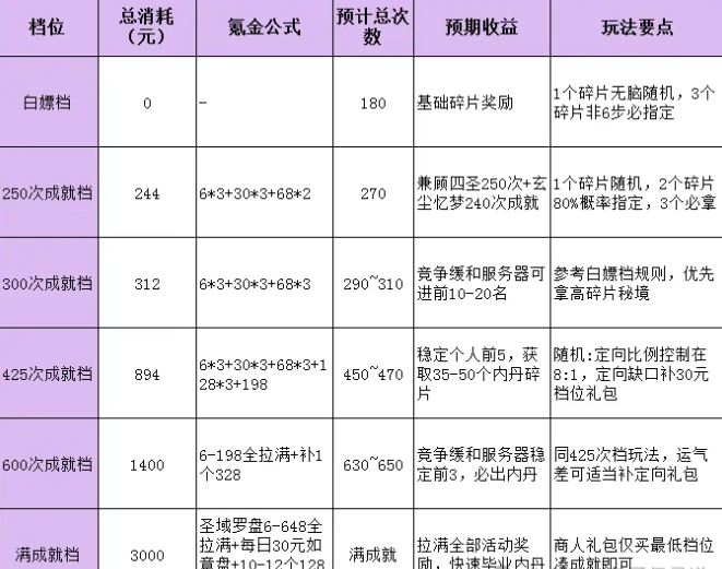 注意档位调剂,计划着累充搭配,新区没出内丹的可看白嫖玩家。