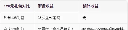 1、若妖盟内有30人及以上成员愿意选择128档位的充值,建议优先选购商人礼包,而非外部礼包。以60人规模的妖盟为例: