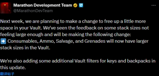 尽管《马拉松》的表现未能完全达到发售前的最佳预期,但Bungie工作室在游戏发售前后始终积极响应玩家反馈。今日,官方公布了下周即将上线的更新预告,其中备受玩家诟病的仓库容量不足问题将得到显著改善。