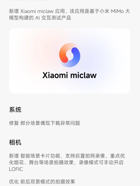 Miclaw:测试版本,复杂任务可能出错,功耗和流畅度仍在优化。