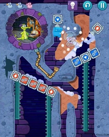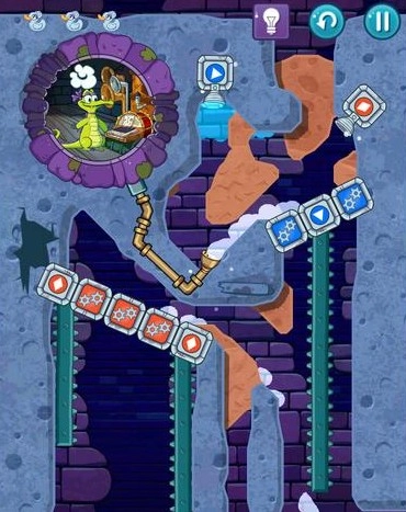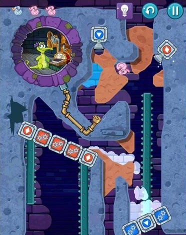 《鳄鱼小顽皮爱洗澡2》关卡11挑战模式攻略这一关的挑战模式相当于11关的颠倒版本,在处理水蒸气分流问题时,务必注意不要颠倒操作顺序,否则之前的努力就白费了。