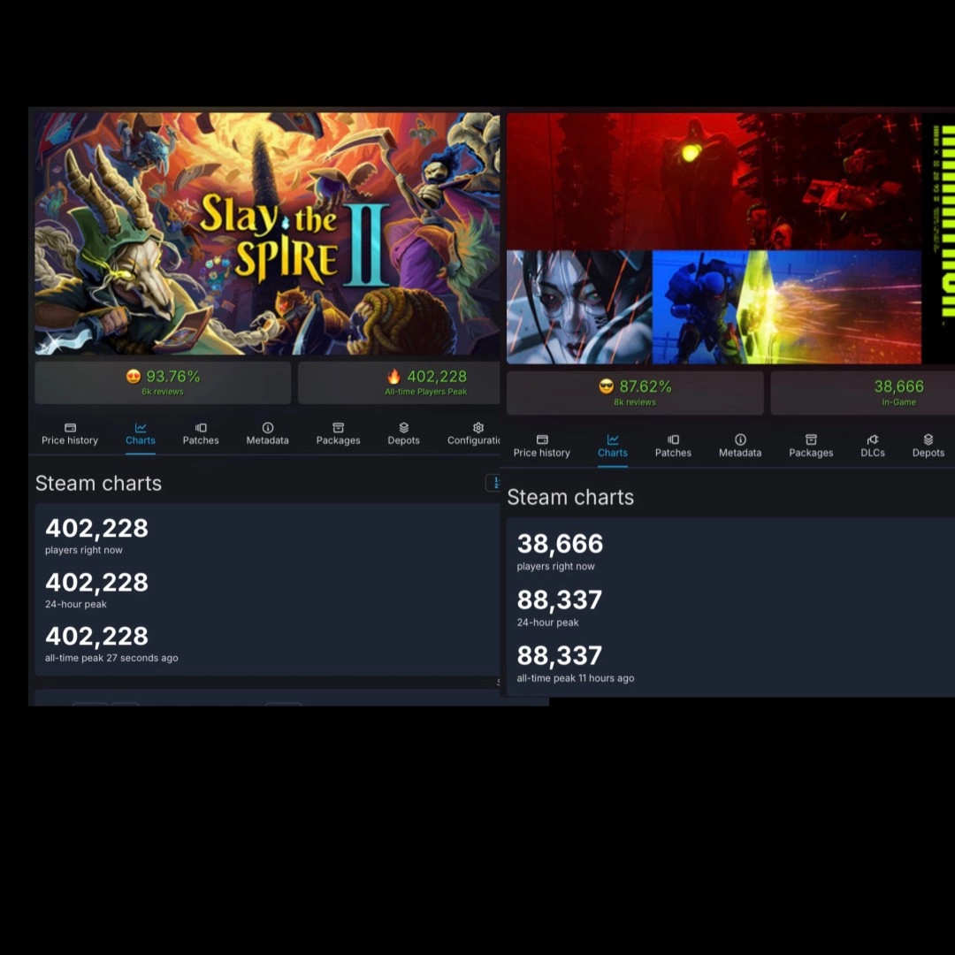 最新热度数据显示,《杀戮尖塔2》在Steam平台的同时在线玩家数突破40万,对于一款独立小游戏而言,这无疑是个令人惊叹的成绩。